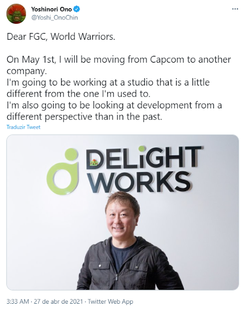 Conforme o BLOG havia adiantadona semana passada, o ex-produtor da série Street Fighter, Yoshinori Ono,